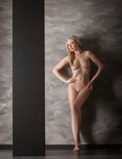 Posing Around A Post In A Brown Dress